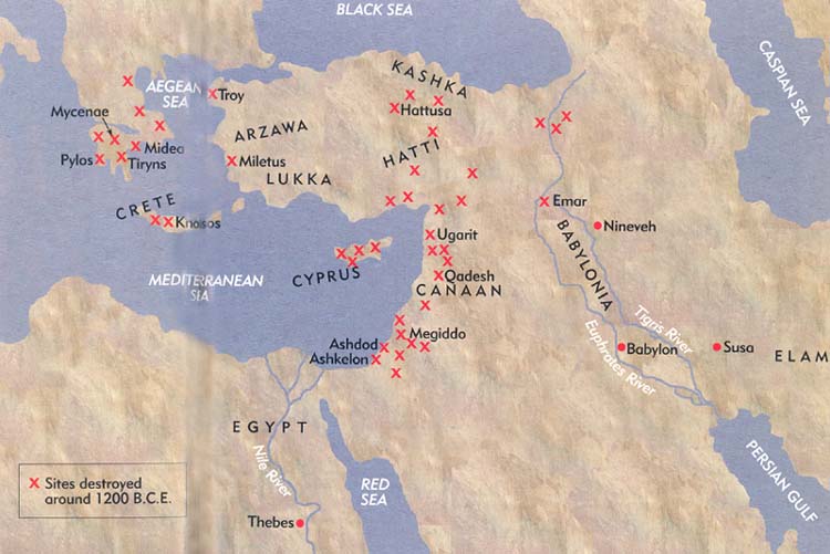 المواقع التي دمرت في انهيار العصر البرونزي حوالي 1200 قبل الميلاد