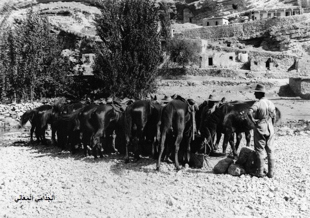 عمان - خيول القوات الاسترالية ( قوات الحلفاء ) في عمان بعد احتلالها عام 1918 م