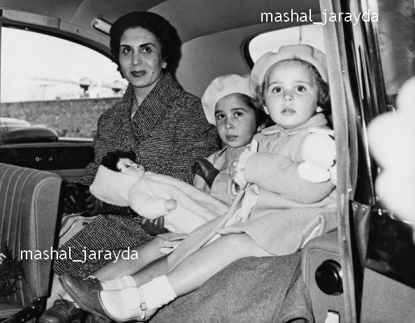 #الملكة زين الشرف (زوجة الملك طلال) "مواليد 1916" بالوسط #الأميرة بسمة بنت طلال "مواليد 1951" و #الاميرة عالية بنت الحسين "مواليد 1956" ** الصورة تعود الى عام 1958 م ... (Y)