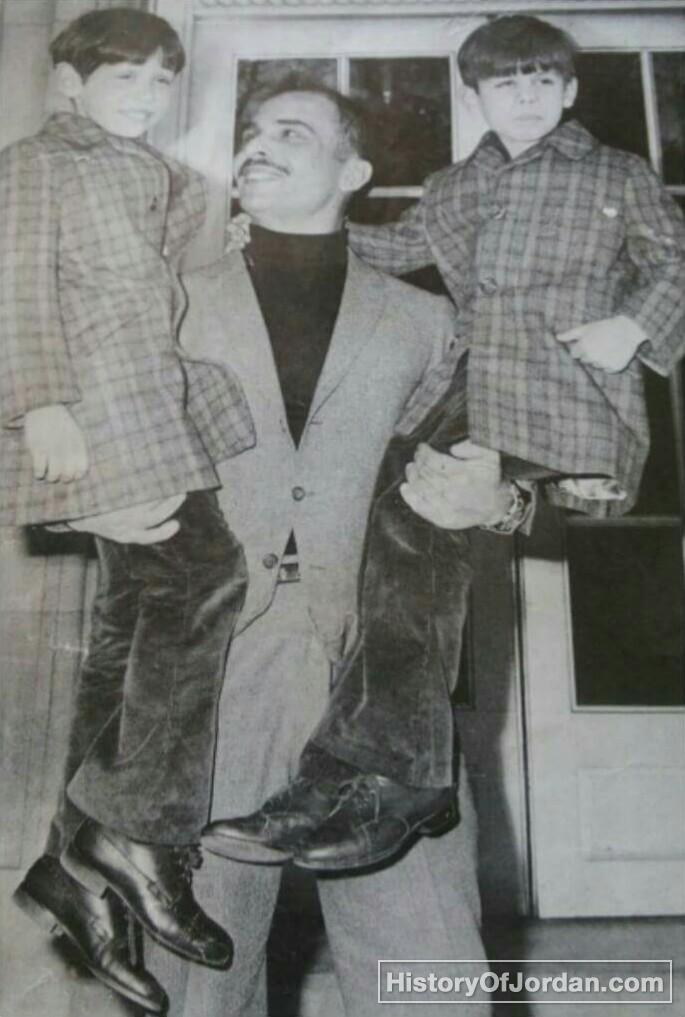 صاحب الجلالة الملك الحسين بن طلال رحمه الله والأمير عبدالله (انذاك) واﻷمير فيصل في لندن