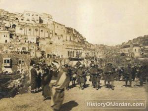 صوره في مدينة السلط تظهر جنود أنجليز والصوره مأخوذه من